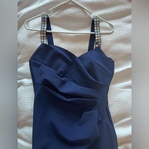 Chiara Boni Navy Shami Sleeveless Midi Dress NWT