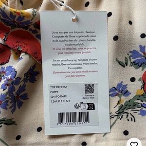 NWT Sézane Denitsa Poppy Camisole Top in Cream with Red and Blue US 2/36