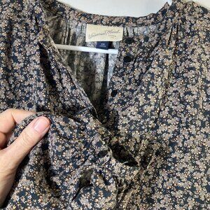 Womens Universal Thread Ditsy Floral Prairie Top Black Peach 2XL Cotton Rayon