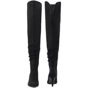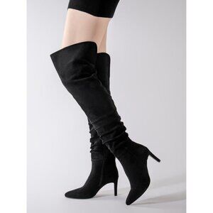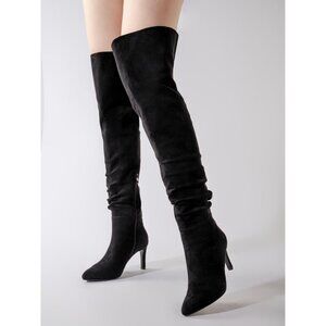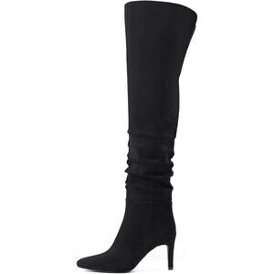 Women Suede Black Thigh High Over The Knee Stiletto Heel Pointed Toe Long Boot