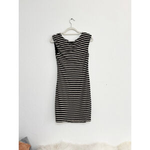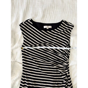Women's LOFT Petite Striped Ruched Sheath Dress MP Black White