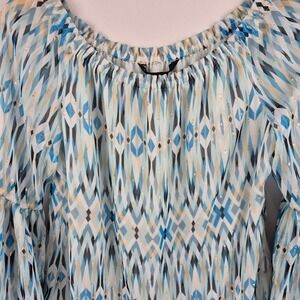 White House Black Market Off The Shoulder Bell Sleeve Blue Print Blouse Top S