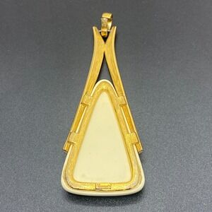 Signed Crown Trifari Resin Cream Triangle Gold Tone Pendant Modernist Vintage