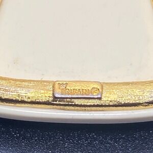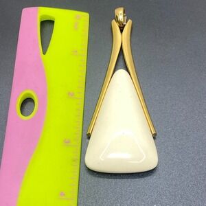 Signed Crown Trifari Resin Cream Triangle Gold Tone Pendant Modernist Vintage. In good, used condition. No cracks, chips or stains. Light wear from age and use. Please review all photos for accurate condition. Please note that the color may appear slightly different from the image due to lighting or screen settings.