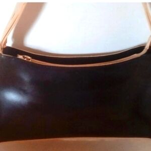 This stylish women's bag features a sleek black design with tan accents, perfect for any occasion. Its elegant look makes it a versatile accessory for your wardrobe.