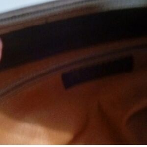 This is Made in Italy, black leather with brown strap. It has zippered pocket and zippered closure .It's very Smartly designed and measures 12 wide and 6 high