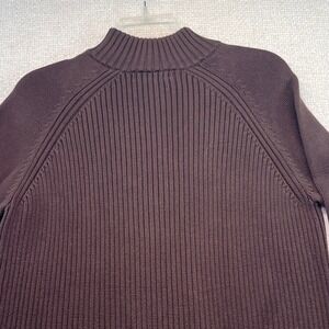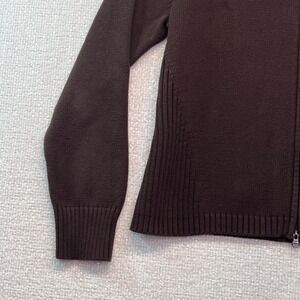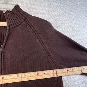 Kate Hill Petite Full Zip Sweater Women's Large Brown Ribbed Mock Neck Knit
