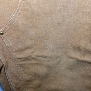 This vintage Carhartt pant is perfect for workwear enthusiasts. With a solid brown color and double knee detail, this dungaree fit pant offers straight leg style and a high-rise waist of 38 inches. The zip closure and machine washable garment care make it a practical choice for outdoor-themed USA made apparel.