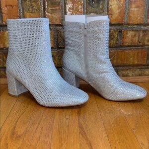 * Top Moda *NEW* HESTER-15 Ankle Boots Block High Heels Rhinestone Bling Silver Short Booties Side Zipper Women’s Size 10