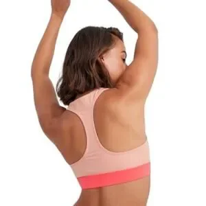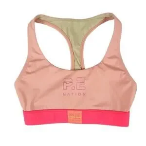 P.E Nation Peach Bloom Box Out Sports Bra in coral color.