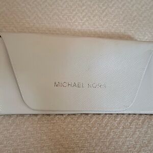 Elegant white eyeglass case by Michael Kors. Sleek and stylish design. Blue light
