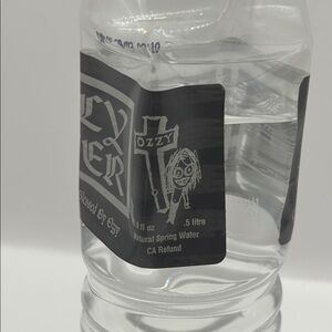 Clear spray bottle labeled 'Holy Water" each bottle personally blessed by Ozzie 16 ounce springwater vintage 2001 from meet and greet experience prior to the release of the Osbourne reality show please see photos and review carefully. Water was never opened, however through the years naturally evaporated.
