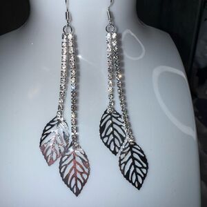 These elegant silver dangle earrings feature a stunning leaf design, perfect for adding a touch of sophistication to any outfit.