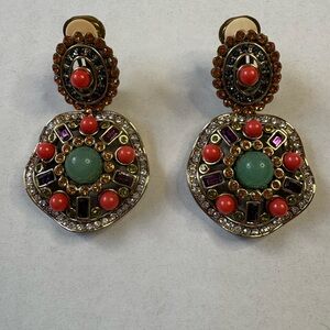 Heidi Daus Multi Stone Crystal Drop Clip-On Earrings Never Worn