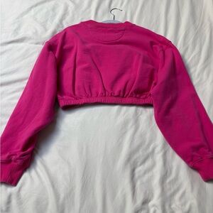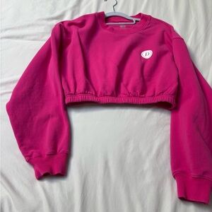 Stylish fuchsia cropped sweatshirt with Pure Barre logo. Ideal for casual outings.