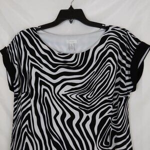 Chico's | Zebra Sheath Dress Black White Stretch | Size L (12)