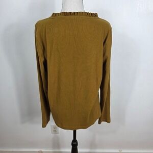J. Crew Mustard Yellow Ribbed Ruffle Neck Top XL