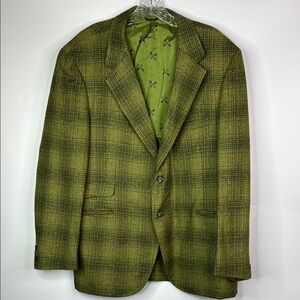 Vintage Hampton Heath Green Wool Plaid Blazer Jacket Size 44