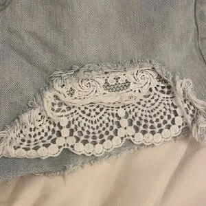 American Eagle Denim Cut-Off Jean Shorts Womens Size 0 Lace Boho Festival