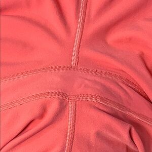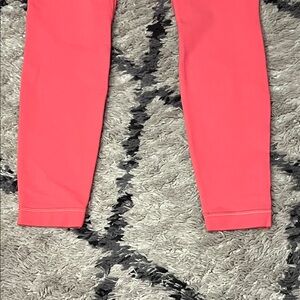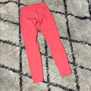 Stylish coral high-waisted leggings. Perfect for workouts or casual wear.