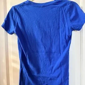 Cute blue t-shirt featuring a cat “nyom nyom nyom”ing on a poptart with a rainbow design. Perfect for casual wear.