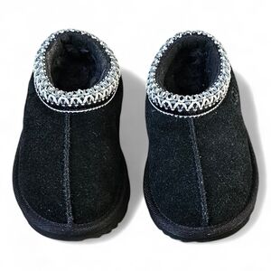 UGG Kids Cozy Slippers – Black Wool Lined Slip-Ons (Toddler Size 6 / EU 22)