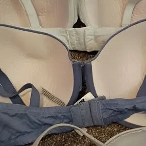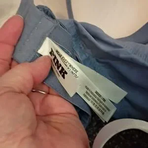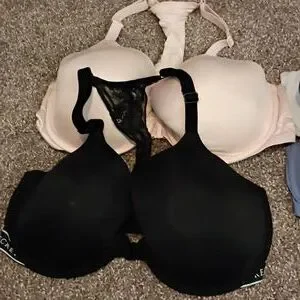 Excellent condition V.S. bras and PINK lightly lined bras total of 5. Black and pink/cream colors are racerback, black has lace backing and both are front hook. Blue and faded white are PINk lightly lined t shirt bras, both in good condition with lots of life left. back hooks with adjustable straps and convertible. Last but not least is a light gray, convertible push up, also in great shape. All fit great as they are all 38DDD.