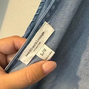 Chic blue romper by beachlunchlounge. Sleeveless design with button front. Drawstring waist for comfort.