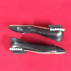 Chanel Leather Pearl Embellished Cap Toe Ballet Flats Size 36 EU