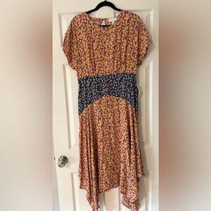 NWT Topshop Mixed Floral Print Hanky Pink Hem Midi Dress. Size US 10.