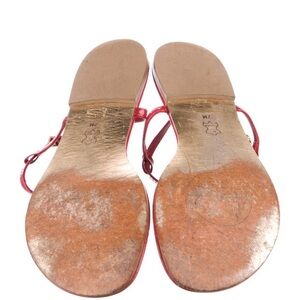 Bold red sandals with stylish straps. Eye-catching design with gold accents. Perfect for adding flair to any outfit.