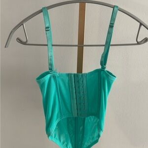 Chic teal lace corset with delicate detailing. Adjustable straps for comfort. Never worn!