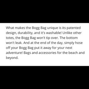What makes the Bogg Bag unique is its patented design, durability, and it's washable! Unlike other totes, the Bogg Bag won't tip over. The bottom won't leak. And at the end of the day, simply hose off your Bogg Bag put it away for your next adventure! Bags and accessories for the beach, moms sports bag for kids and beyond.