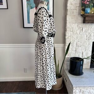 Vintage 80s Black & White Dress Geometric Nipon Boutique 100% Silk Size Medium