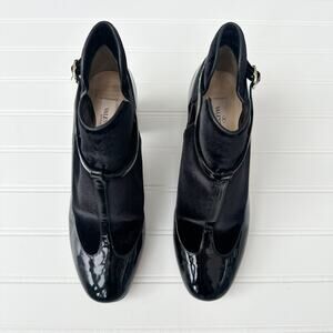 Valentino Black Patent Leather Velvet T-Strap Block Heel Ankle Strap Pumps 38
