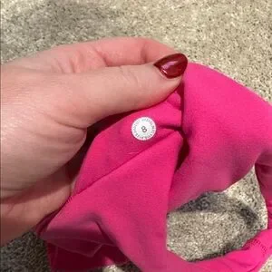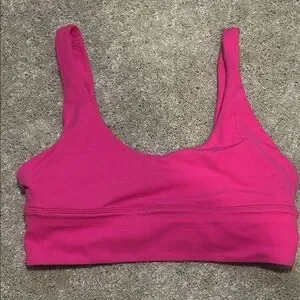 Bold pink sports bra by Lululemon. Ideal for active lifestyles.