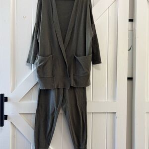 Pact Organic Cotton Lounge Set Olive/Charcoal Green Cardigan Joggers XS