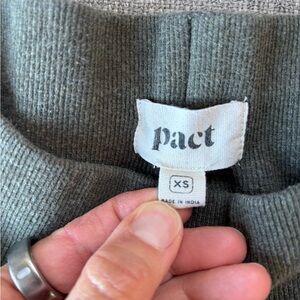 Soft, comfortable Pact lounge set made from 100% organic cotton. Includes an open-front cardigan and matching jogger pants in a versatile neutral tone. Gently worn with mild, expected fabric wear consistent with cozy loungewear—no major flaws. Perfect for relaxing at home, travel days, or casual everyday comfort. Sustainable, breathable, and easy to wear year-round. Please see all pictures for details.