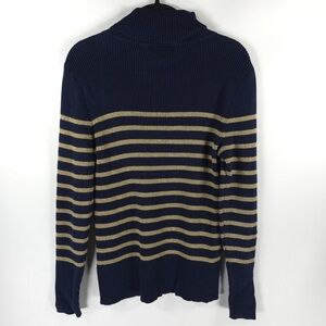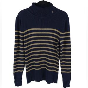 LAUREN RALPH LAUREN LOGO Turtleneck Navy Gold Metallic Stripe Cotton Blend Ribbed Sweater L