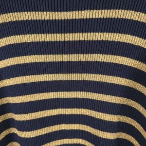 LAUREN RALPH LAUREN LOGO Navy Gold Metallic Stripe Cotton Blend Ribbed Sweater L