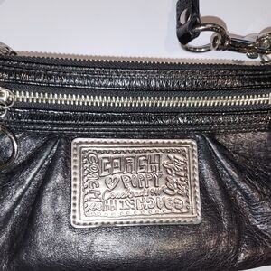 Coach Poppy Black Leather Mini Bag/Wristlet with Silver Accents