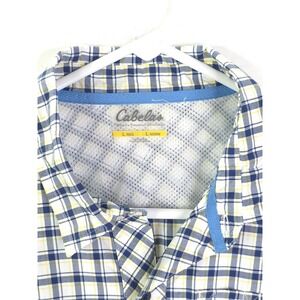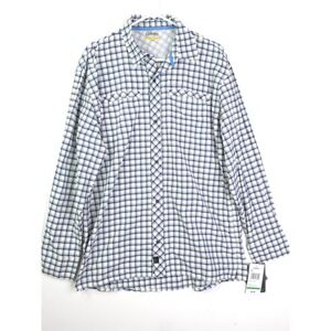 NEW Cabelas Shirt Men L White Plaid Nylon Blend Vented Fishing Button-Up
