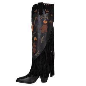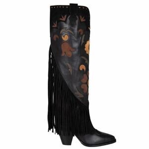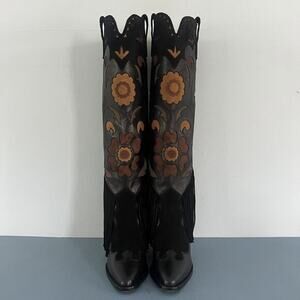 NWT Spell Sannah Fringe Onyx Black Leather Suede Western Tall Boots