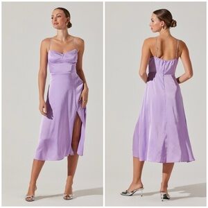 ASTR The Label Bustier Satin Midi Dress in Lavender Size Large NWOT!