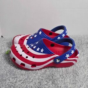 Crocs Classic American Flag Clogs Size Men's 6 Women's 8 USA Patriotic Shoes NEW