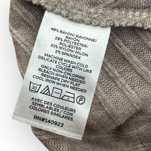 LOFT Womens Size Medium Ribbed Cowl Neck Long Sleeve Ruched Shirt Top Neutral