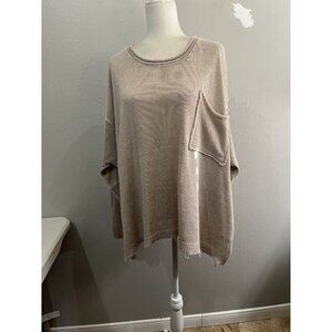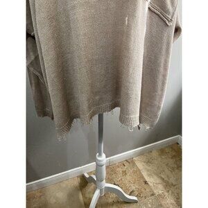 Easel Oversized Knitted Sweater Front Pocket Distressed Hems Size Medium Tan