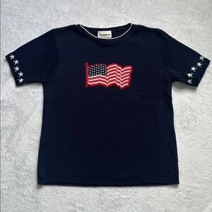 Vintage Hanes Womens USA Patriotic Flag Stars Short Sleeve Sweater Small Holiday Party