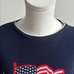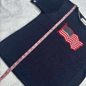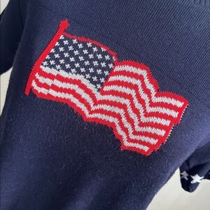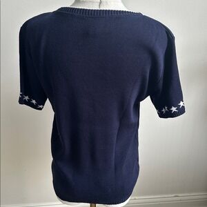 Vintage Womens USA Patriotic Flag Stars Short Sleeve Sweater Small Holiday Party