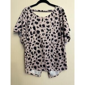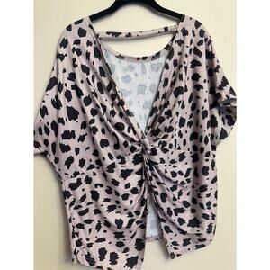 Plus Leopard Print Short Sleeve Top Twist Back Cutout Dolman Sleeve Neutral